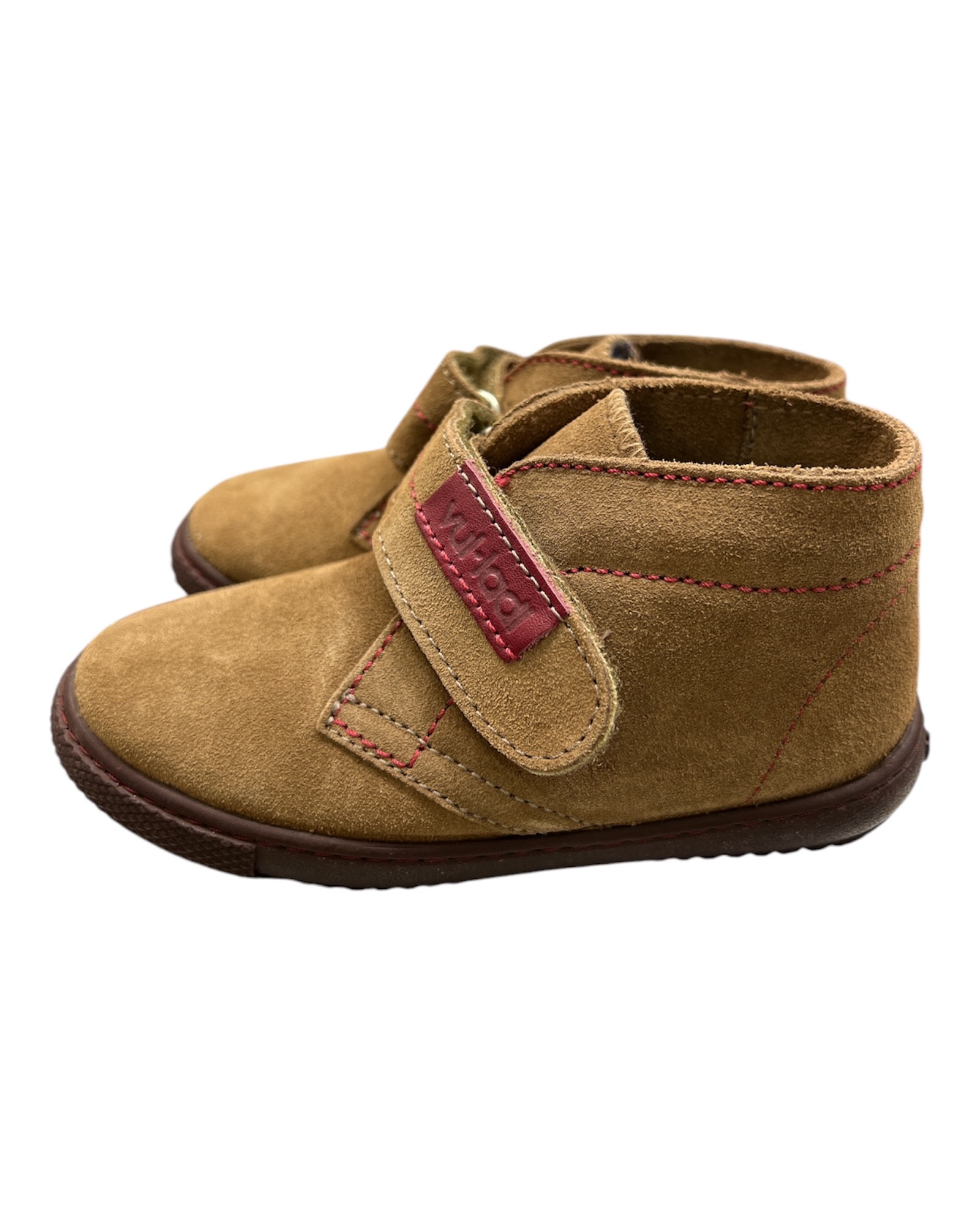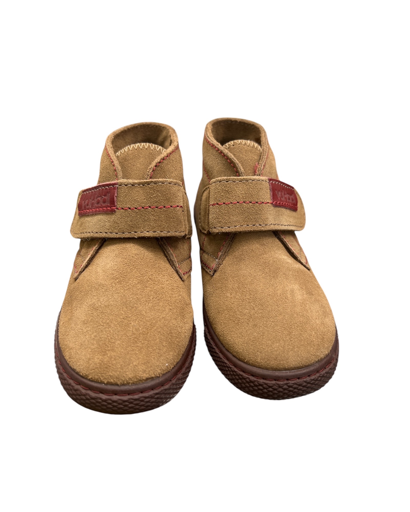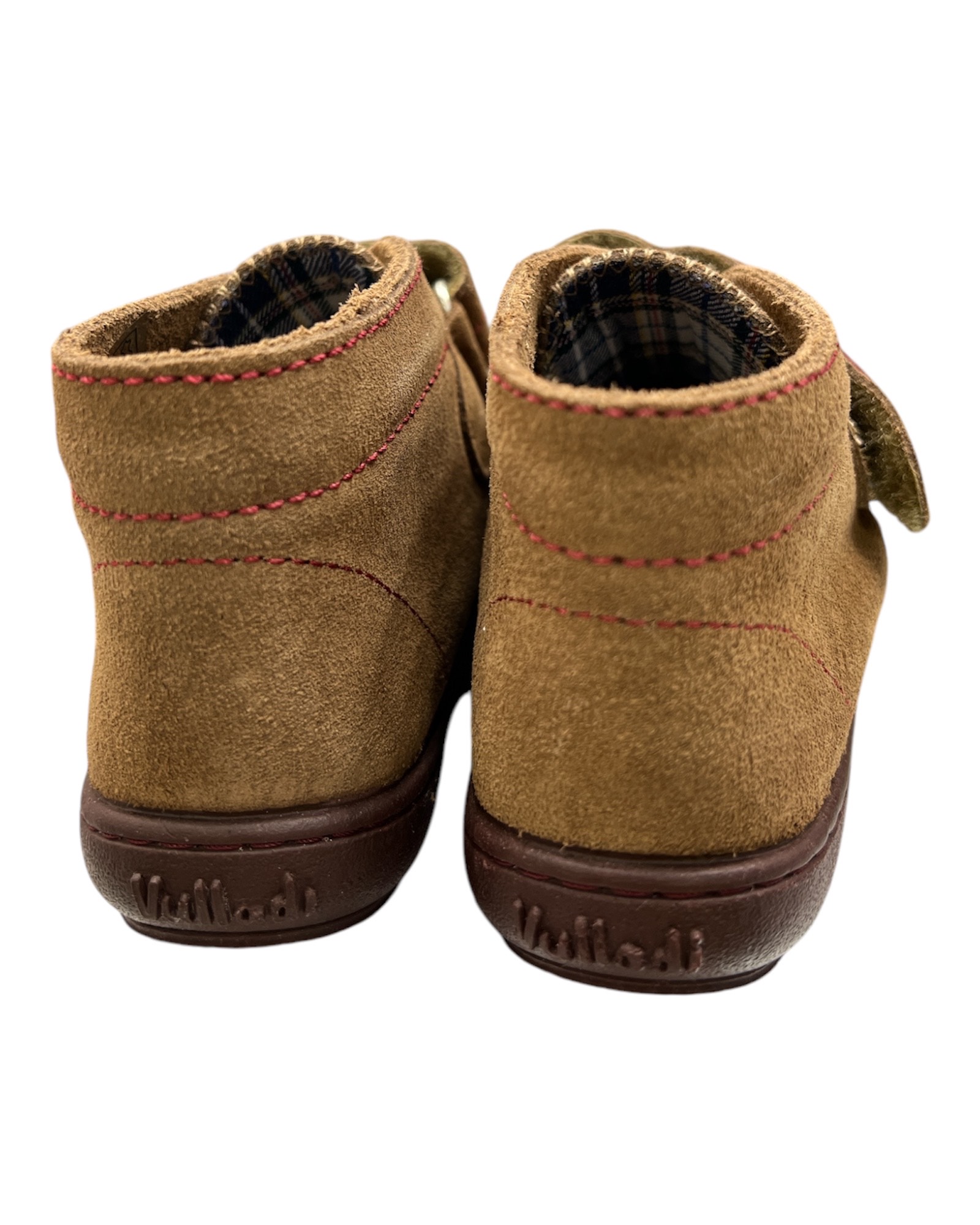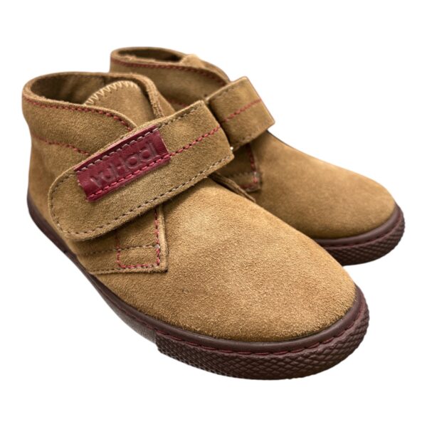 Παιδικό ημιμποτάκι της Ισπανικής εταιρείας VULLADI σε καφέ απόχρωση από σουέτ δέρμα εξωτερικά και ύφασμα εσωτερικά.